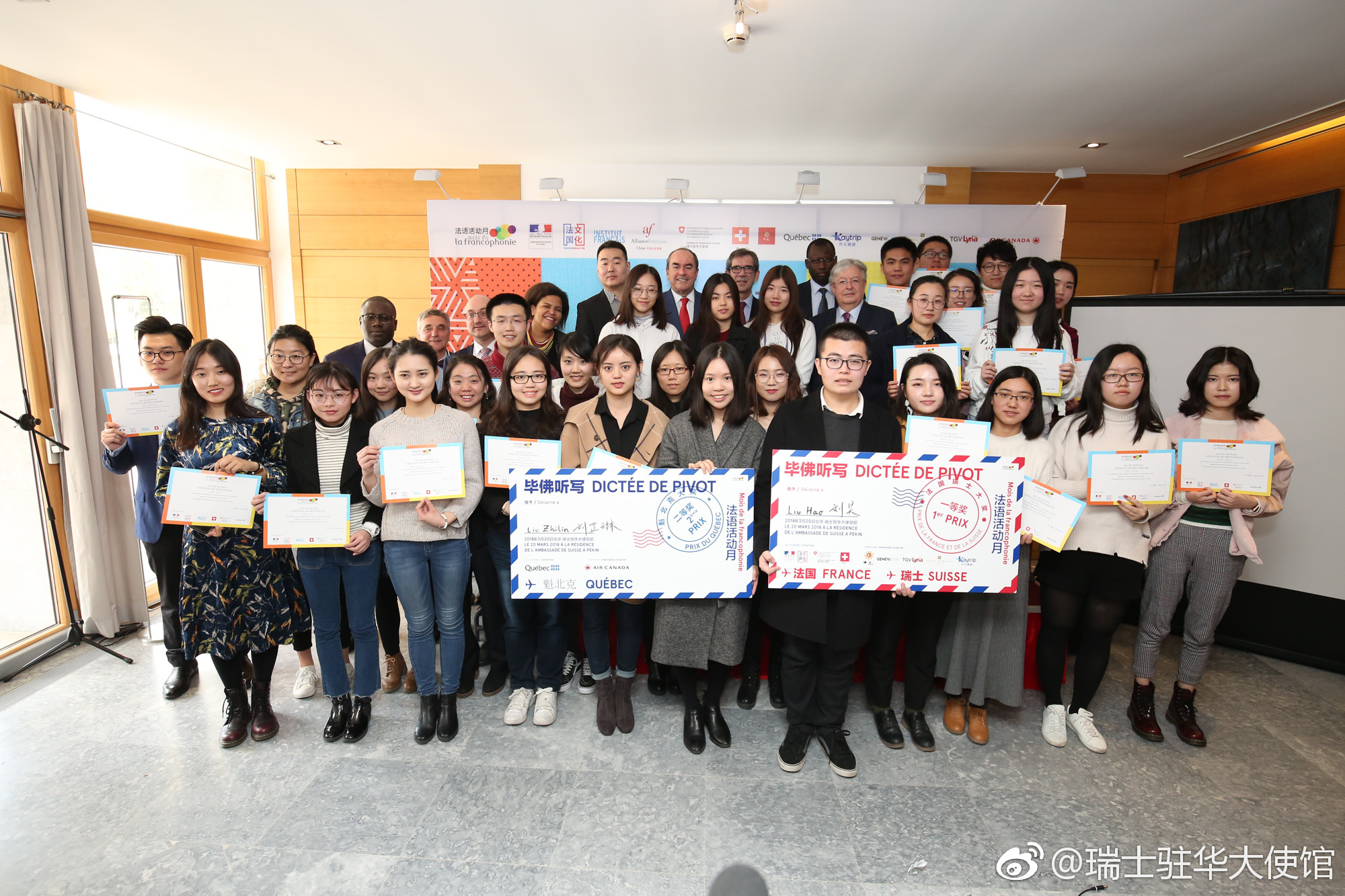 2018年3月20日,为庆祝国际法语日,瑞士驻华大使馆、法国驻华大使馆及魁北克驻华办公室在瑞士驻华大使官邸联合举办了中国第三届毕佛法语听写大赛决赛。我系本科2014级刘芷琳同学获得本次大赛第二名,赢得魁北克双人文化之旅大奖;2015级田晶鑫同学获得第三名,获赠瑞士艺术家塞尔日·杜拉赫(Serge d’Urach)先生的画作和北京五星酒店瑞士美食周双人晚宴;2015级陈子雨同学获得第四名,获赠免费法语学习课程。