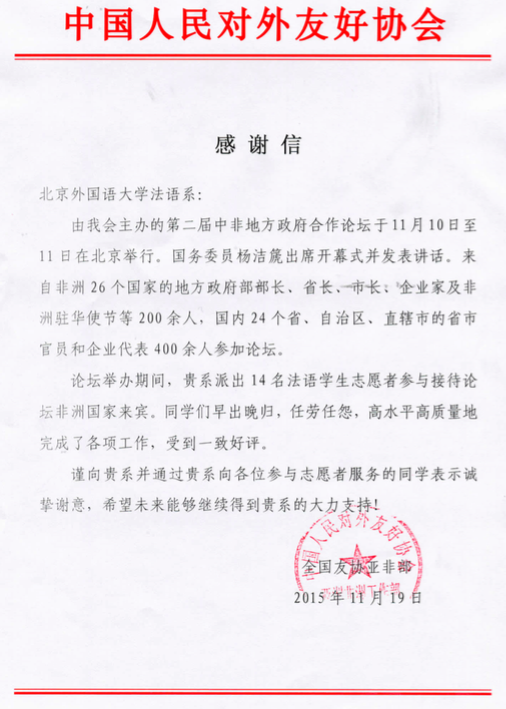 对外友协感谢信