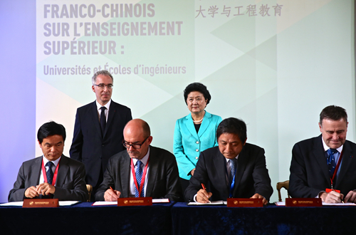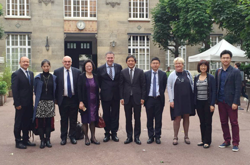 6月29日至7月1日,校长彭龙率团访问法国,参加中法高级别人文交流机制系列活动和中法高等教育论坛,并访问了欧洲高等商学院、法国国立东方语言文化学院和巴黎政治学院。在国务院副总理刘延东的见证下,彭龙代表我校与欧洲高等商学院(ESCP Europe)签署合作意向书。