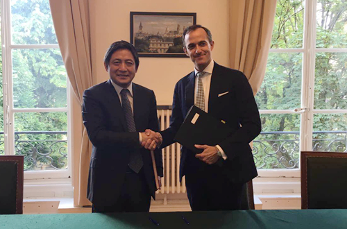 协议签署前,彭龙与欧洲高等商学院院长布诺瓦(Frank Bournois)进行了会谈。双方一致认为,此次在中法高层次人文交流机制框架内和中法两国政府高层领导人的见证下签署合作协议,对两校关系具有里程碑意义,双方一致同意尽快启动研究生学历合作项目,实现两校优质教育资源的深度整合。