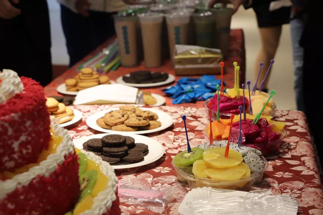 第一轮结束,大赛主办方为在场各位精心准备了丰盛的冷餐会。各校学子在享受美食的同时,相互热烈交流,在轻松愉快的氛围中深化了友谊。