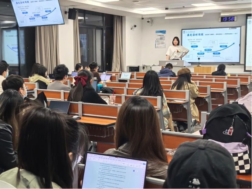 在逸夫楼203开展保研主题朋辈分享会,邀请到了四位成功保研的学姐分享自己的经验,辅导员李朝伟老师出席本次分享会。