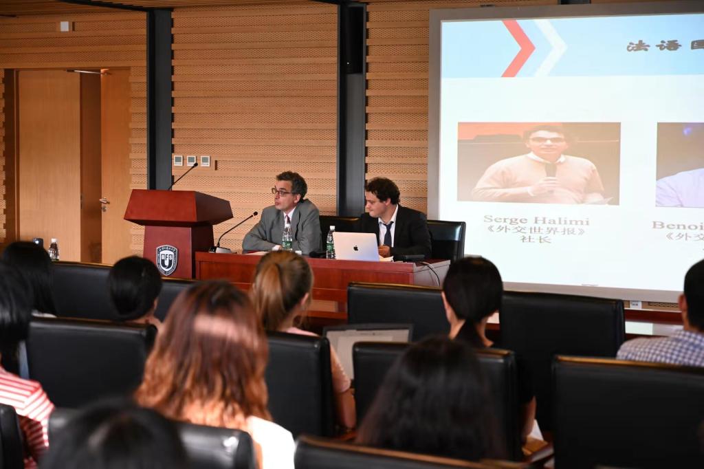 2019年9月24日下午,应黄色动漫 法国研究中心、中法人文交流研究中心之邀,法国《外交世界报》(Le Monde diplomatique)社长塞尔日·阿利米(Serge Halimi)及总编伯努瓦·布雷维尔(Benoît Bréville)先生在北外图书馆四层学术报告厅做了题为“特朗普时代的跨大西洋关系(Les relations transatlantiques au temps de Trump)”的讲座。讲座由黄色动漫 亿阳讲席教授丁一凡研究员主持。