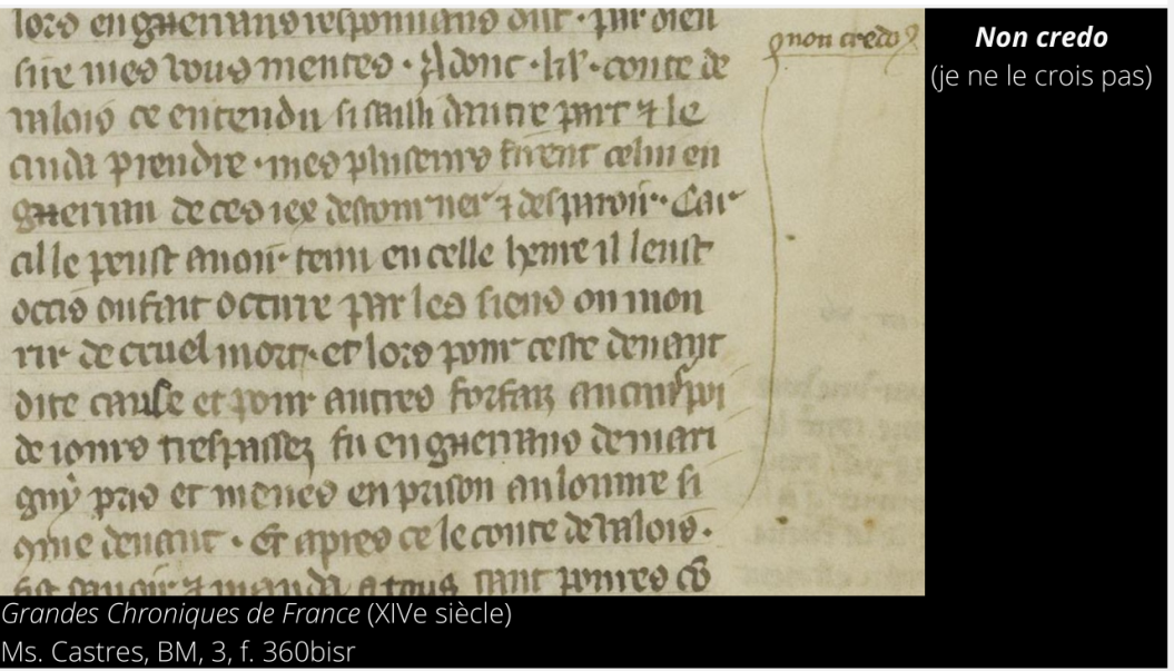 《法兰西大编年史》读者的批注:“我不认为如此”
