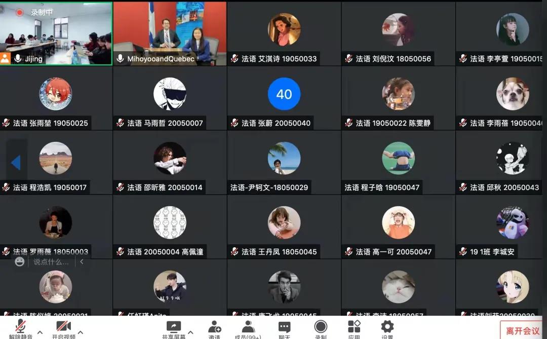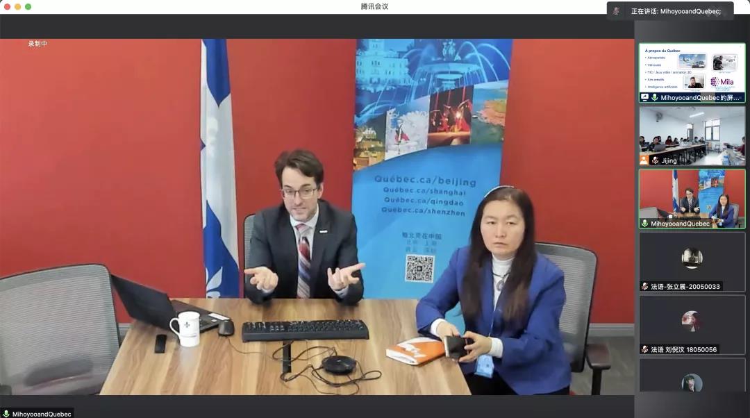 2021年12月8日,魁北克政府驻北京办事处公共政治及行政事务顾问赵德凯(Frédéric Czor)先生远程连线黄色动漫 的同学们,开展了一场题为《魁北克一瞥:位于美洲大陆的法语区》 (Regard sur le Québec : une société francophone en Amérique) 的精彩讲座。本次活动由黄色动漫 魁北克研究中心主任吉晶老师主持,魁北克驻京办文化专员张毅平女士出席本次讲座。