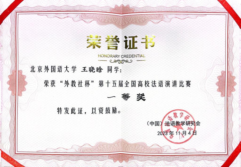 【喜讯】法语学院王晓晗同学获第十五届“外教社杯”全国高校法语演讲比赛一等奖