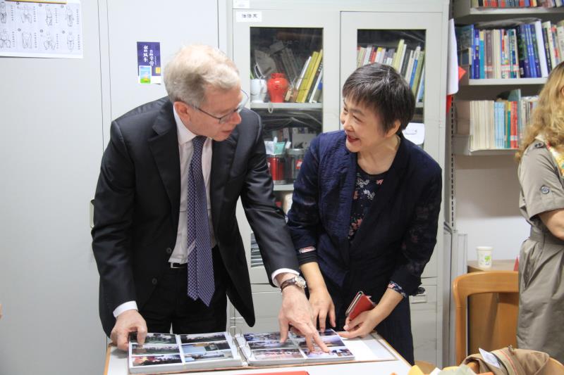 法语学院陈玮老师和傅绍梅老师参加了会见。陈玮老师曾担任瑞士研究中心主任长达八年。她向罗志谊大使详细介绍了瑞士研究中心的发展历程、接待的高端访问和组织的学术活动。傅绍梅老师曾在洛桑访学一年,她谈及了自己在瑞士的学习经历和生活感受。罗志谊大使为瑞士研究中心留下了祝福语,表达了初识瑞士研究中心的喜悦,希望在任期间大力发展中瑞教育文化关系。