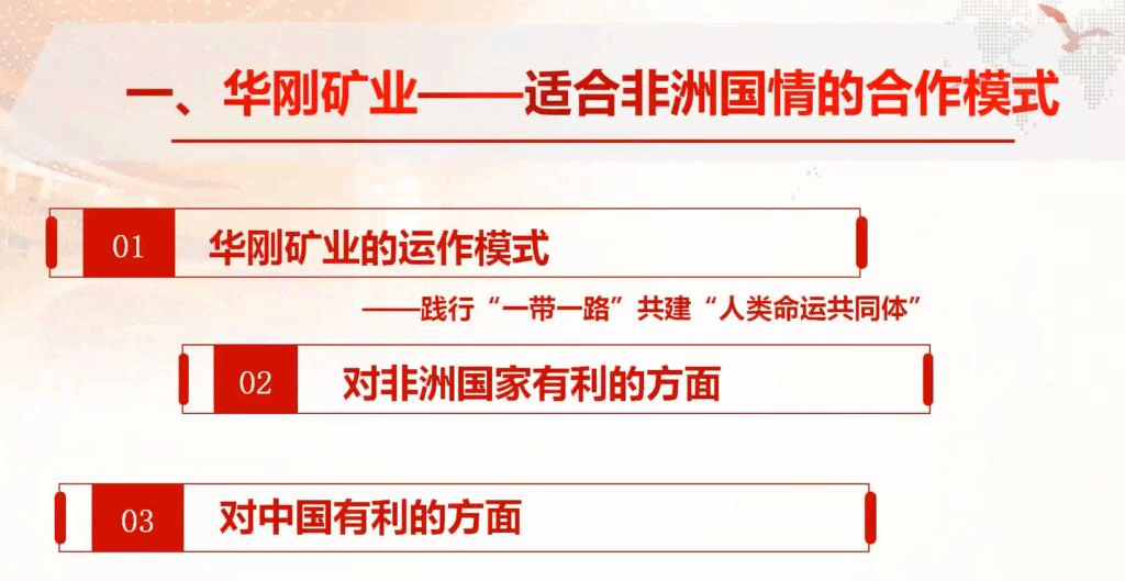 主讲人从学习“二十大精神”切入,分析了在当前复杂的国际形势下中国的外交政策和对外发展思路,以华刚矿业公司为例,介绍了中国企业在非洲的发展情况,及其如何担负起构建“人类命运共同体”的任务。