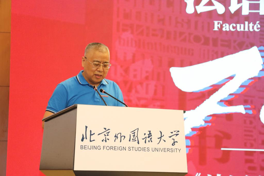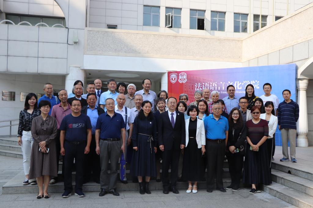 我校副校长贾文键、法语学院十余位退休教师代表、中国前驻刚果(金)和黎巴嫩共和国大使吴泽献、前驻布隆迪大使冯志军、前驻法国斯特拉斯堡总领事张国斌、国务院发展研究中心世界发展研究所原副所长和《法国发展报告》主编丁一凡、中国机械进出口集团公司原党委书记、副总经理周立先等校友代表、我校区域与全球治理高等研究院、宣传部、校友会等校内代表出席,多位驻华外交使节通过视频讲话表达了祝贺。