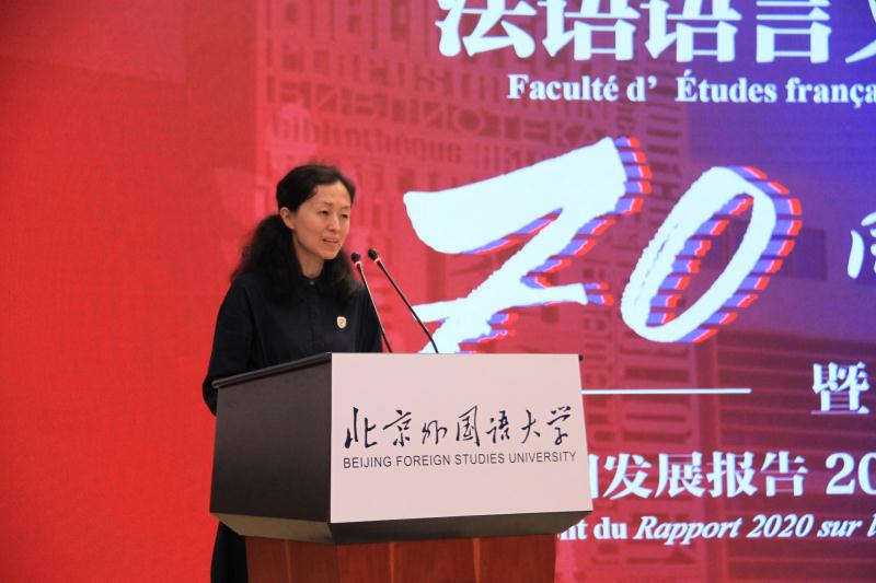 法语学院院长、法国蓝皮书副主编戴冬梅在发言中回顾了法语学院的发展史,并分别向学院新老教师、各界校友和法国蓝皮书系列的作者、编者与参与者们致以敬意和谢意。