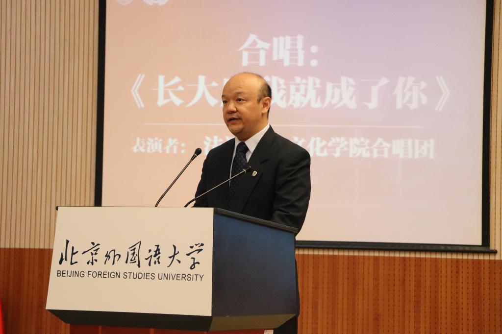 贾文键在致辞中代表学校对校友们回校表示欢迎,他充分肯定了法语学院的优秀教学传统,对法语学院校友们在各自岗位上所做的贡献表示赞赏,对法语学院所取得的既有成绩表示祝贺,勉励法语学院以70周年为起点,为学校、为社会做出更大贡献。同时,他对法国蓝皮书第三辑的顺利出版表示祝贺,肯定了其重要的学术价值和现实意义,希望该系列皮书不断增进中国各界对法国的了解,继续推动法国研究学科领域的发展。
