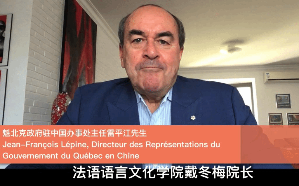 在随后的院庆环节中,原法语系主任陈振尧教授通过视频发表讲话,立足国际大势,结合法语这门语言的特点和难点,鼓励后辈努力钻研。